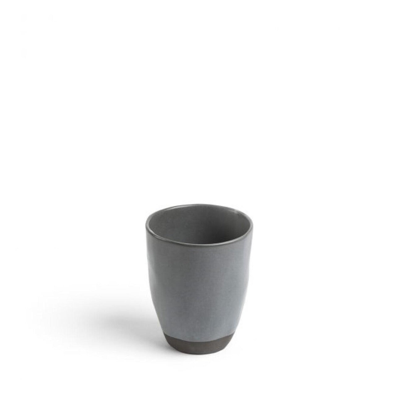 This Daylesford Palamino Tumbler features a sophisticated, dual-tone finish in shades of grey and charcoal. It is crafted from durable ceramic, offering a substantial feel for daily use. The design balances modern simplicity with textural contrast, making it a versatile piece for any kitchen setting.