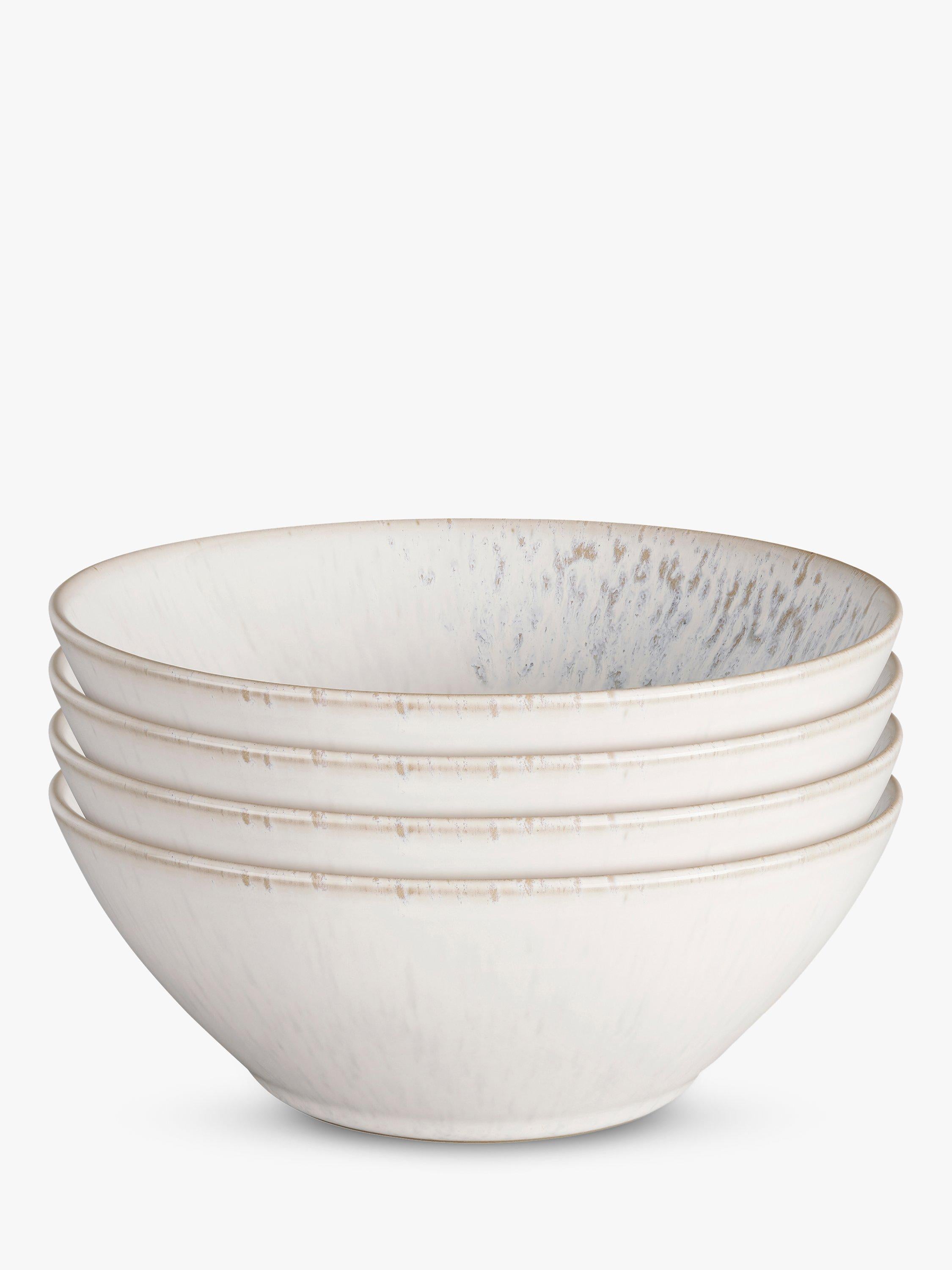 This Denby Kiln Stoneware Cereal Bowl Set includes four substantial 16.5cm bowls ideal for practical everyday use. Inspired by studio pottery, the calming oatmeal grey tones contrast beautifully against the chalk white base. Each bowl possesses a unique handcrafted freckling glaze, ensuring your dining experience feels special every single time.