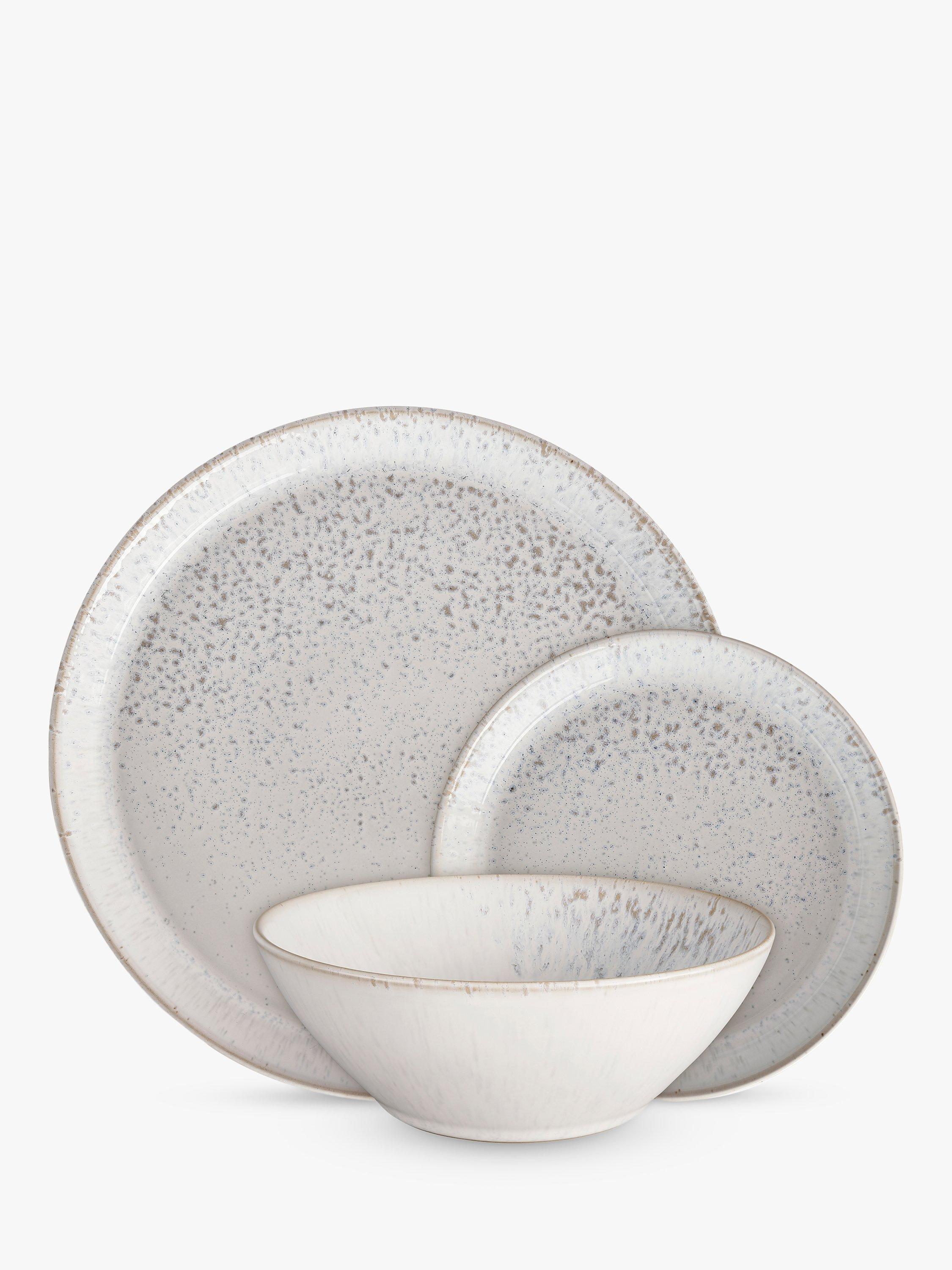 Denby Kiln Stoneware Dinnerware Set 12 Piece Natural offers beautiful, durable eating essentials for your home. Inspired by classic studio pottery, each piece showcases unique handcrafted freckling glaze details. This comprehensive 12-piece set is perfect for both casual dining and special occasions.
