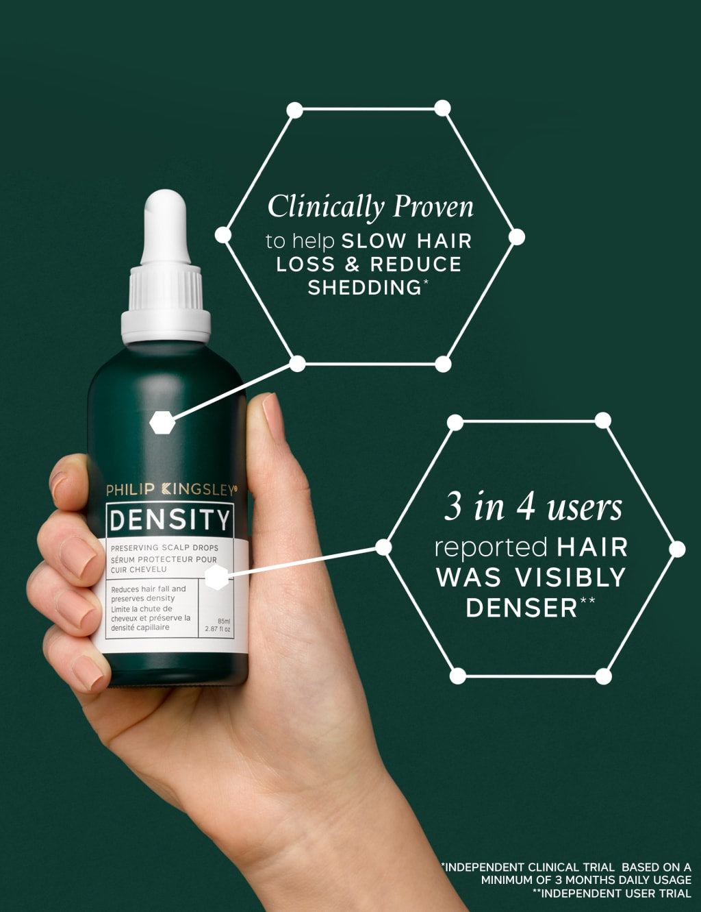 Read MoreDensity Preserving Scalp Drops contain an innovative active complex designed to help maintain follicle condition and protect hair density and quality over time. The synergistic complex within our clinically tested, lightweight serum provides an instant feeling of stimulation and improves hair condition to help prolong the hair’s lifecycle, reduce scalp visibility, and slow hair loss with continued use. When used for 3 months continuously.
