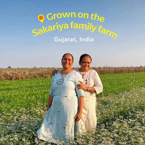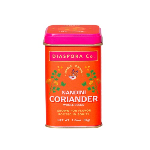 This Diaspora Co. Nandini Coriander features whole, fresh seeds known for their distinct lemony nuttiness. The seeds are kept whole specifically to maintain the integrity of their essential oils and long-lasting fragrance. This unique coriander variety is sourced from the Sakariya family farm, where natural farming methods have been practised for six generations.