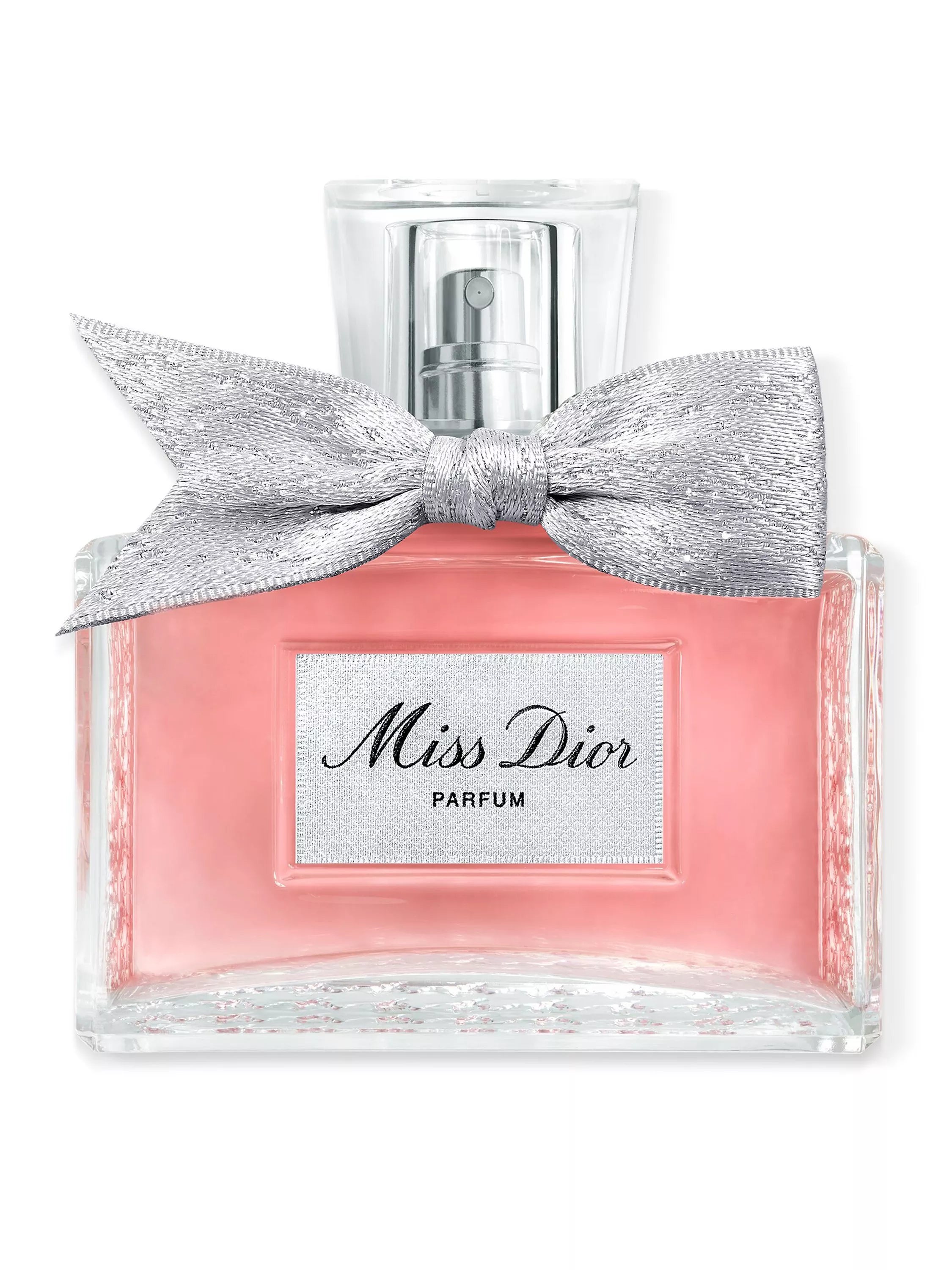 The emblematic Miss Dior houndstooth motif envelops around the bottle. A silvery 'poignard' bow tied around the neck completes the signature couture spirit of Miss Dior Parfum.