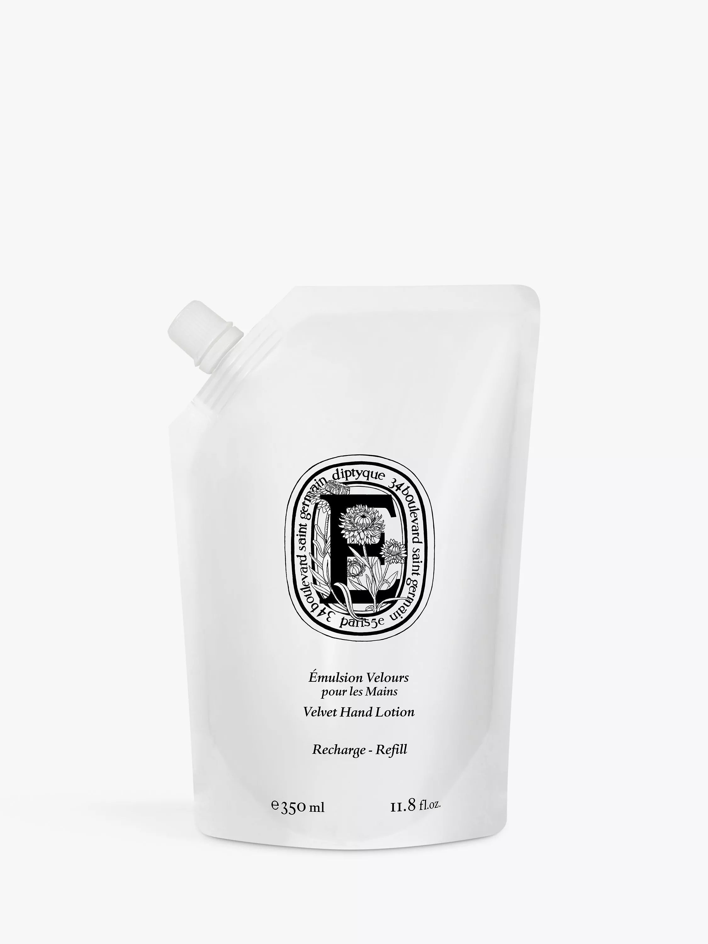 This refill allows you to fill the reusable glass bottle with Velvet Hand Lotion.