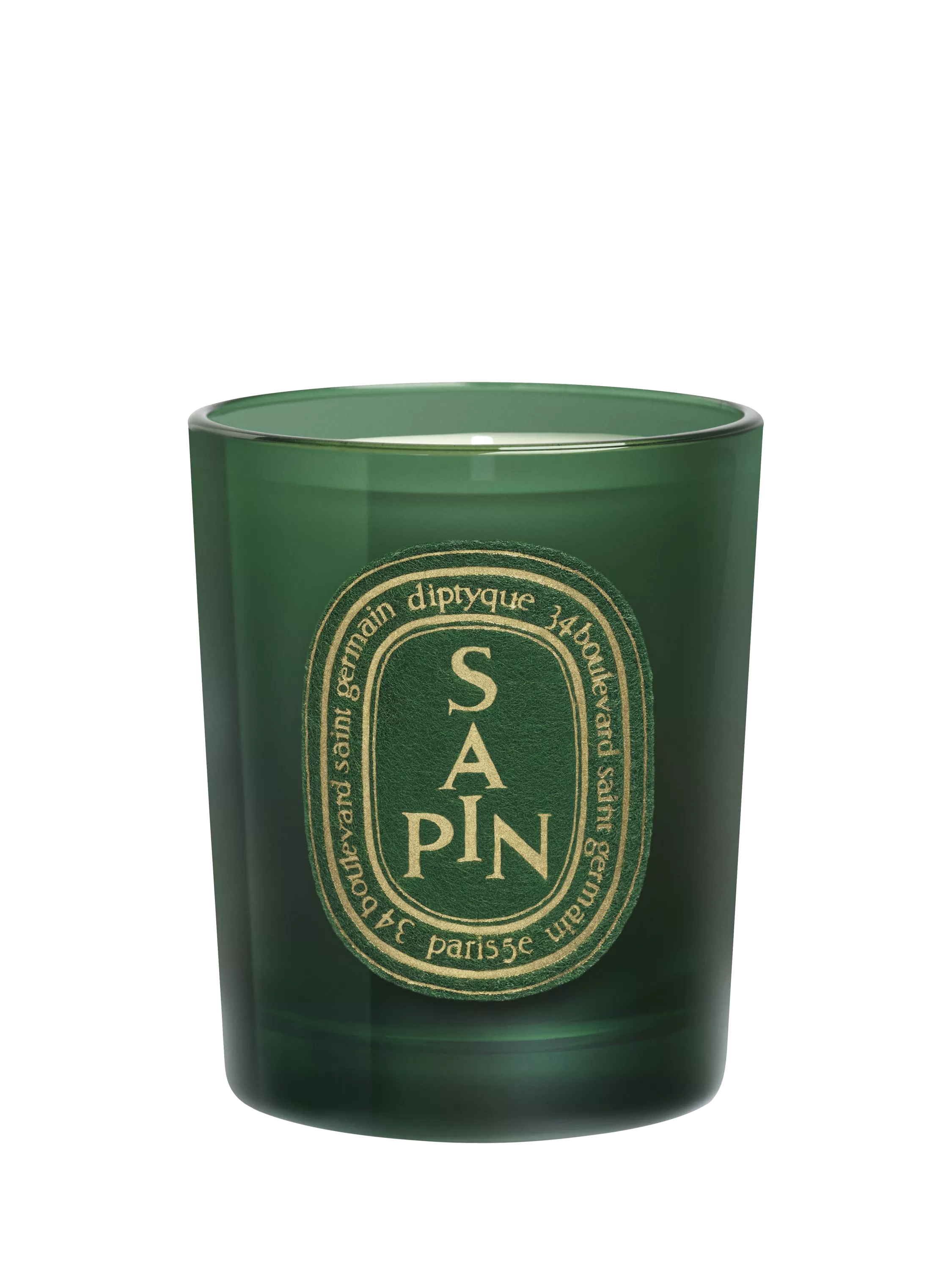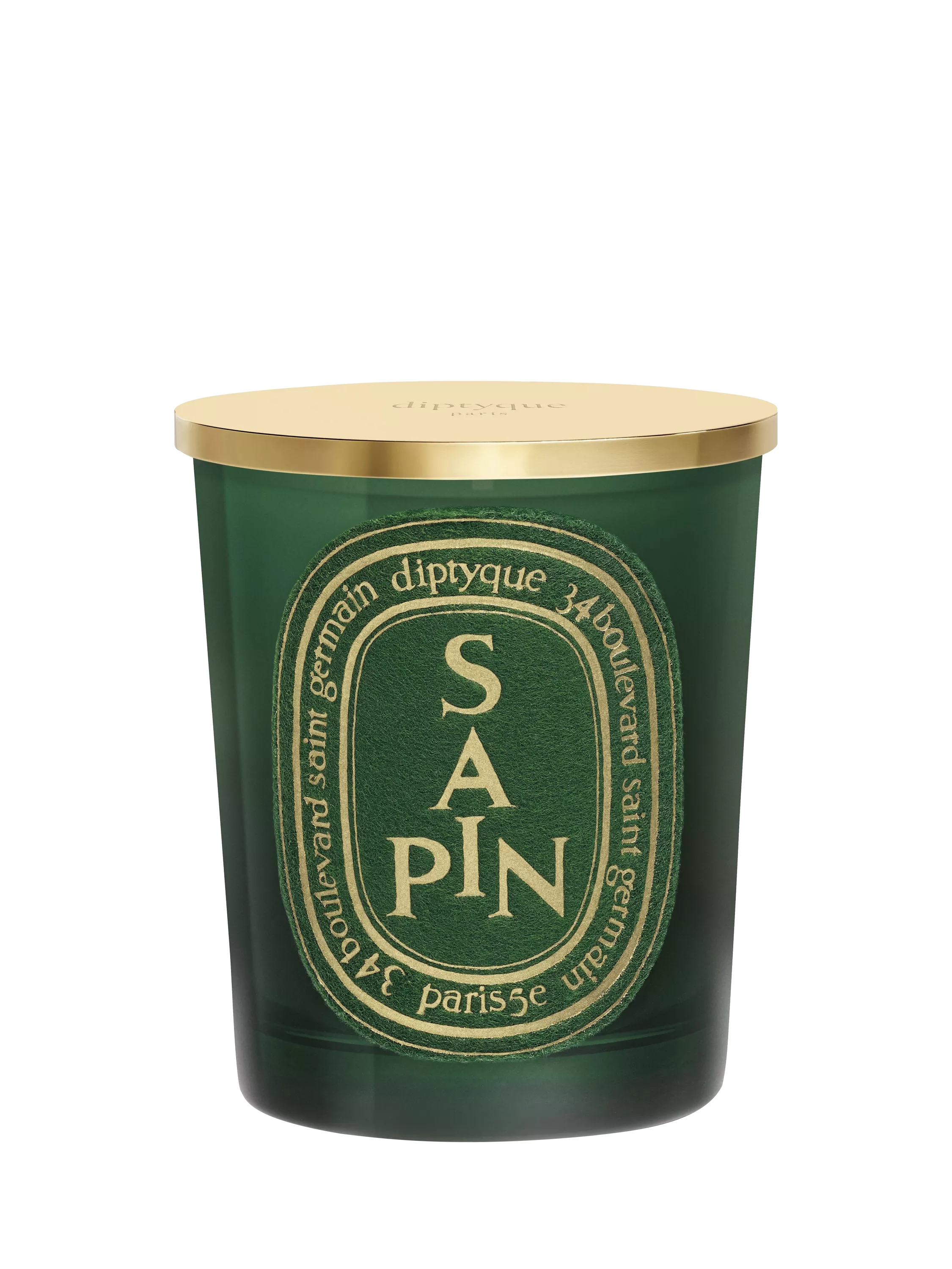 This limited edition Sapin (Pine Tree) candle comes decorated with a golden lid and a label crafted in felt.