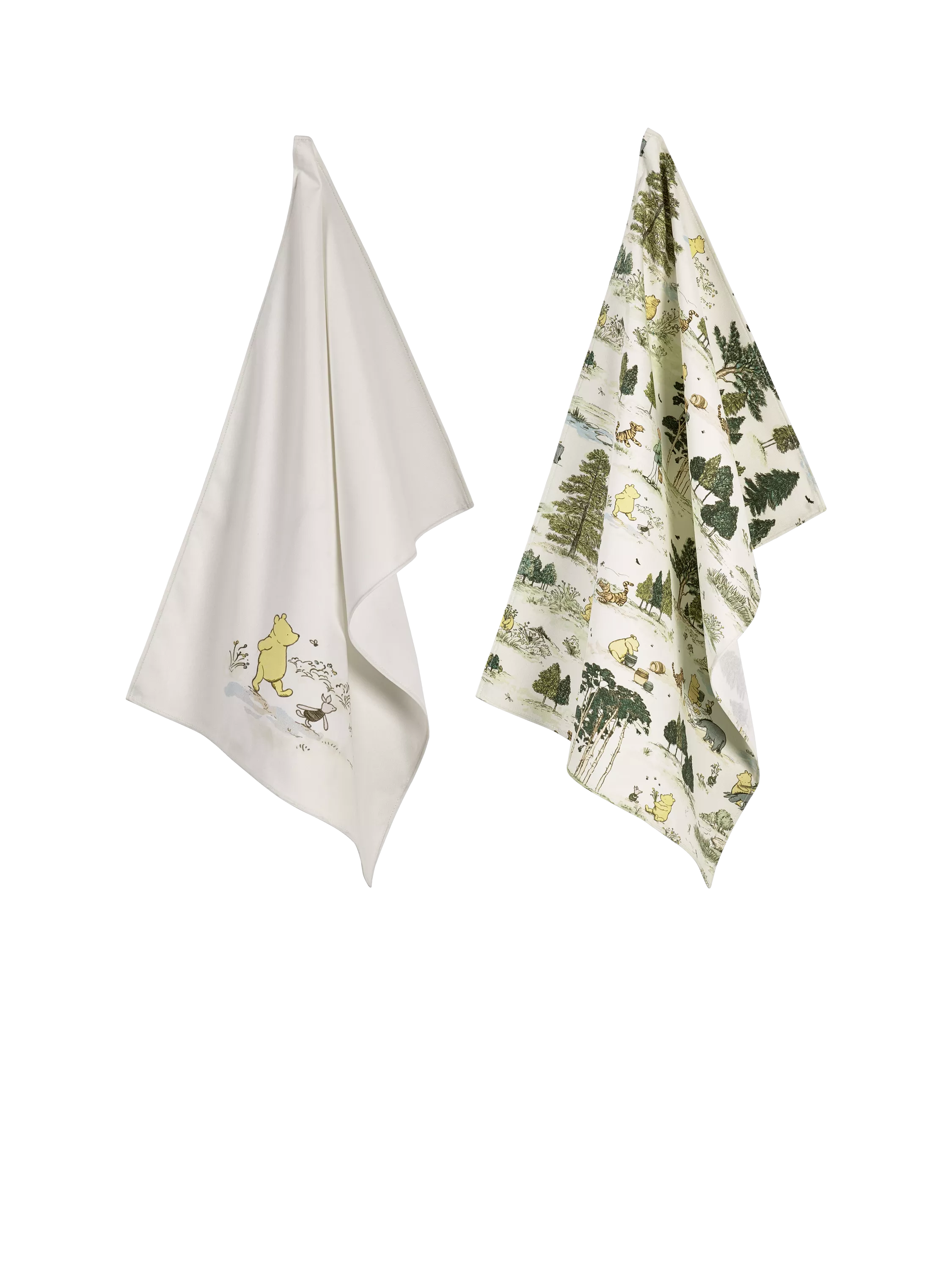 From archived designs to newly created patterns that reflect a timeless aesthetic and universal appeal, Disney and Sanderson have joined together to create a collection of enchanting designs in vintage-inspired hues. Pack up a picnic and take a stroll through England's enchanted ancient woodland in this delicately coloured and emotive design of Sanderson's interpretation of Disney's Winnie the Pooh story captured in this set of Disney Tea Towels. Perfect for Disney fans and home décor enthusiasts, these vibrant towels are as practical as they are delightful.