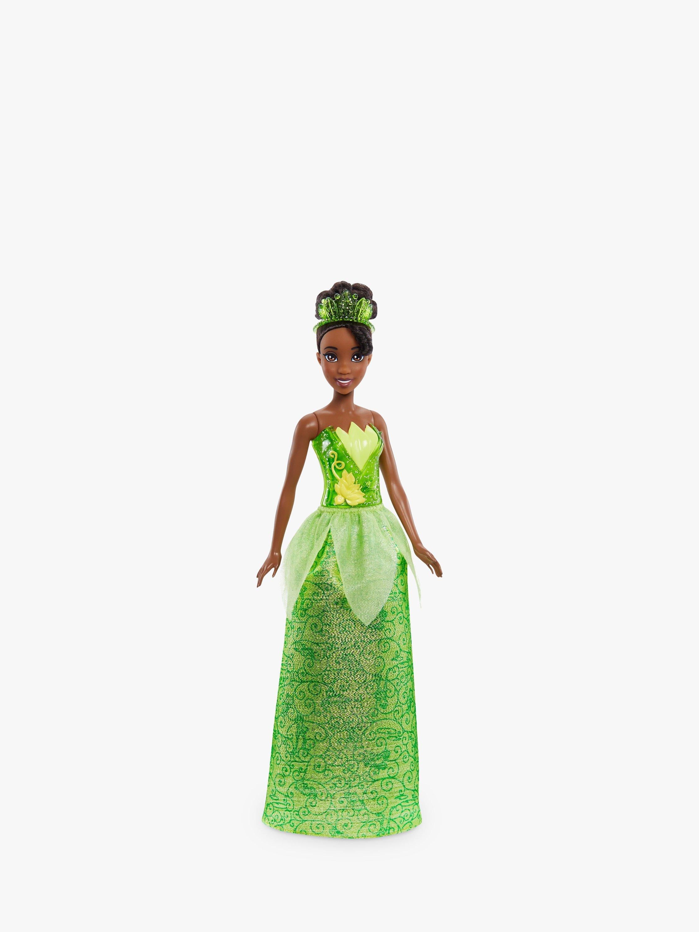 This Disney Princess Tiana Doll captures the determined heroine from "The Princess and the Frog" movie perfectly. This poseable fashion doll wears her signature shimmering movie outfit for engaging play sessions. The set includes stylish removable shoes and a decorative tiara accessory, enhancing overall appeal for young fans.