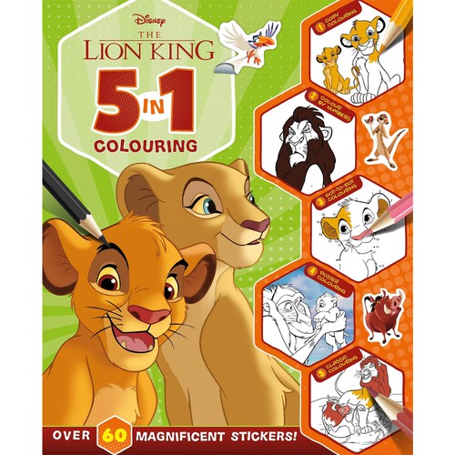 Read MorePick up your pencils and get ready for a 5-in-1 colouring adventure with Simba and all his friends! Packed with five exciting types of colouring and over 60 roar-some stickers, you can bring the magic of The Lion King to life in your own unique style! - 5 different types of colouring, including copy colouring, colour by numbers and dot-to-dot! - With over 60 stickers! - Including Simba, Mufasa, Timon, Pumba, and all of your favourite characters from The Lion King - The perfect gift for young artists and fans of The Lion King Find hours of creative fun inside this roar-some colouring book!
