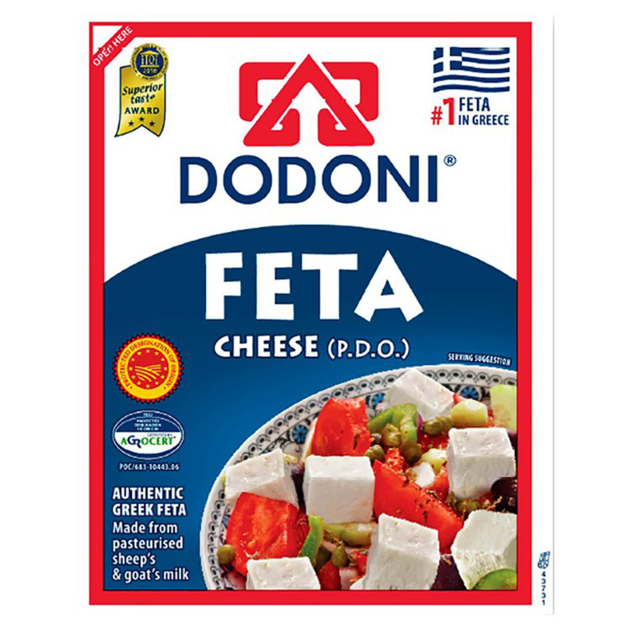 This authentic Dodoni Feta Cheese boasts Protected Designation of Origin (P.D.O.) status, confirming its traditional preparation in Greece. It is exclusively crafted from pasteurised sheep's and goat's milk, delivering the characteristically tangy, salty flavour expected of premium cheese. This award-winning dairy item enhances salads and appetisers with genuine Mediterranean quality.