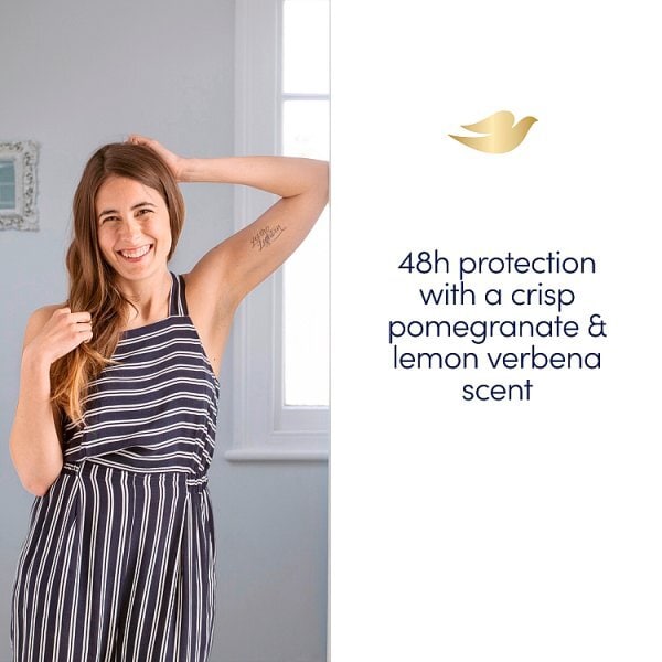 there is another way to deal with damp perspiration patches dove maximum protection designed for those of us who want both a strong antiperspirant deodorant and beautifully soft and smooth underarms you dont have to choose between comfort and dryness if you need a powerful antiperspirant deodorant this strong antiperspirant contains our moisturising cream that helps care for your underarms whilst keeping you fresh and dry the nourishing formula gives you beautifully soft and smooth underarm skin in just five days and even helps to reduce the irritation that regular shaving can cause add in the fact that its been dermatologically tested and you can be sure that this maximum protection antiperspirant deodorant for women will be kind to your skin whilst being tough on sweat the cream stick format is easy to apply and with up to 48 hours of antiperspirant protection you can keep that crisp natureinspired revitalising scent with you all day how to use dove maximum protection antiperspirant deodorant can be used in the morning or at night for optimum sweat protection apply at night when your sweat glands are less active you will be protected for 48 hours even after showering twist the bottom of your powerful antiperspirant deodorant to release the cream with two clicks per underarm and smooth onto each underarm evenlydove maximum protection pomegranate lemon verbena antiperspirant deodorant is our strongest protection against sweat and body odourcontaining our unique moisturising cream this strong deodorant gives you beautifully soft and smooth underarmsprovides up to 48 hours of antiperspirant protectionour deodorant stick is dermatologically tested and contains 0 alcohol to help reduce irritationthis womens deodorant leaves your underarms feeling refreshed with a crisp natureinspired fragrance of pomegranate and lemon verbenaa cream deodorant that provides the strength you need combined with the care you expect from dove