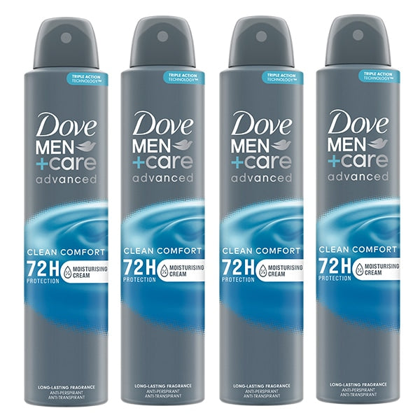 includes dove mencare advanced antiperspirant deodorant clean 200ml x4