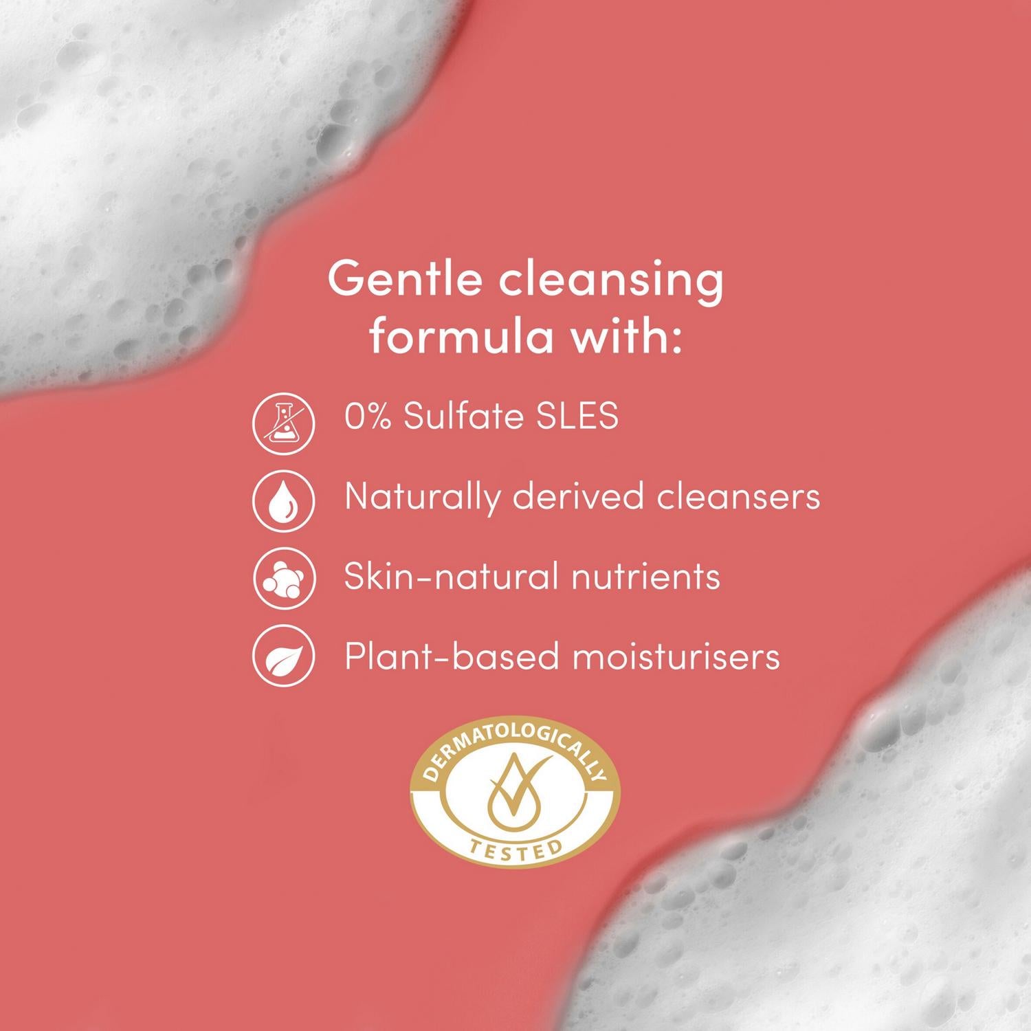 Made with 100% gentle cleansers, plant-based moisturisers and 0% sulfate SLES, the moisturising body wash ensures your microbiome (your skin's living protective layer) is given the nutrients it needs to protect itself and minimise skin dryness. It is also PETA-Approved Vegan and packaged in 100% recycled plastic bottles***.
