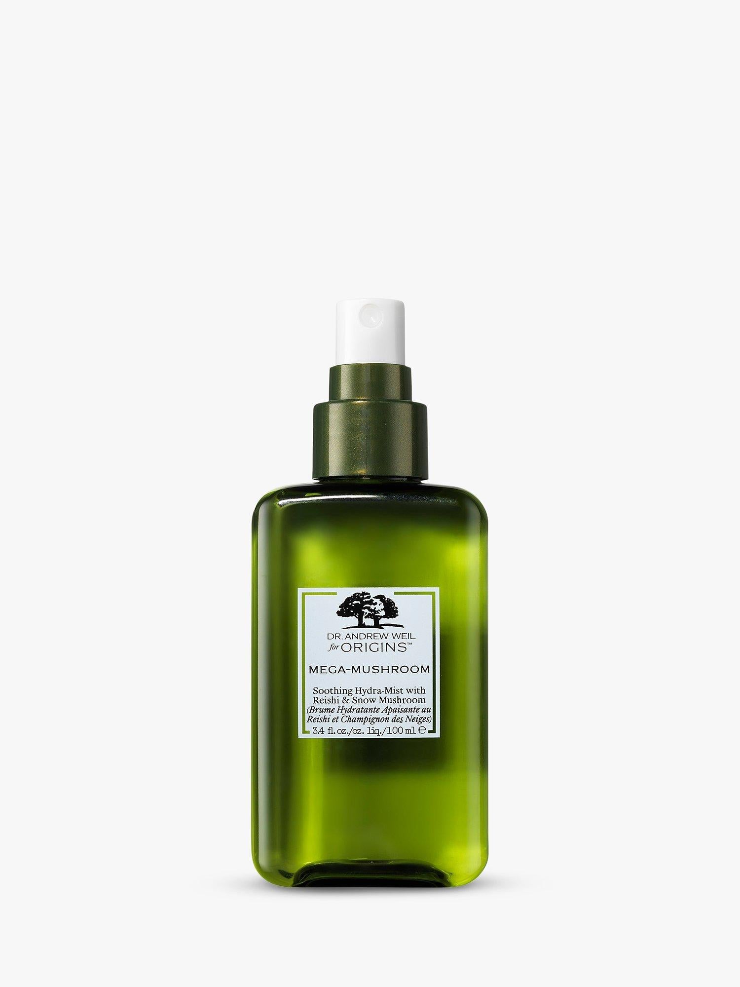 Dr Andrew Weil For Origins Mega Mushroom Soothing Hydra Mist 100Ml offers powerful, soothing refreshment for your skin. This micro-mist formula features Snow Mushroom to instantly boost skin moisture levels significantly. It delivers a plump, luminous complexion instantly, perfect for use anytime throughout the day, over makeup or treatments.