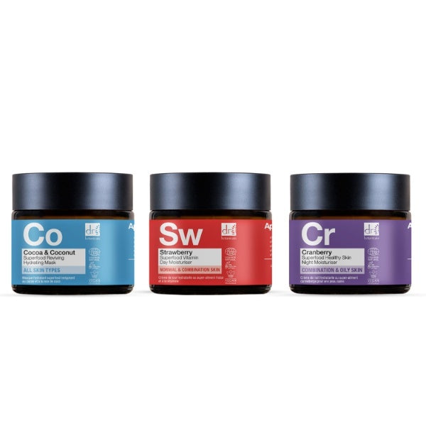 This luxurious skincare kit combines our day moisturizer and night moisturizer to deliver 24-hour hydration and nourishment, leaving your skin soft, supple, and radiant. The day moisturizer features a refreshing, hydrating formula with strawberry and juniper berry superfoods for a balanced, dewy complexion. It's packed with vitamins B6, C, E, and K to revitalize the skin and remove excess oil. The night moisturizer is infused with natural ingredients to improve tone and texture while locking in moisture for a soft-to-the-touch finish. The kit also includes our luxurious Cocoa & Coconut Face Mask for an indulgent, nourishing experience, restoring moisture, supporting the skin's natural barrier, and increasing antioxidant levels. Experience the ultimate in skincare with this powerful combination of our best-selling products.