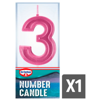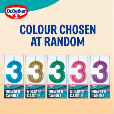 Product Information3 Number Candle Celebrate every birthday with our range of sparkly number birthday cake candles. Whether celebrating for a child's birthday or an important milestone, Dr. Oetker Number Candles are a great way to add a personal touch to birthday and celebration cakes, cupcakes and bakes. Don't forget to make a wish! -Disclaimer: Candle colour chosen at random. If you would like a specific candle colour, please try to add this to the additional notes on your order.