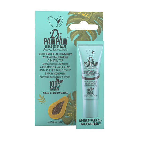 Dr.PAWPAW Shea Butter Lip Balm is an award-winning, 100% natural, multi-tasking balm packed full of Pawpaw (papaya), Aloe Vera, Olive Oil and Shea Butter. The Shea Butter Balm can be used in a variety of ways on the lips, skin and hair; to hydrate lips, nourish dry cuticles and patches of skin or shape brows and tame flyaways. This nourishing multi-tasking balm contains calming and healing properties that work to soothe skin and provide relief.