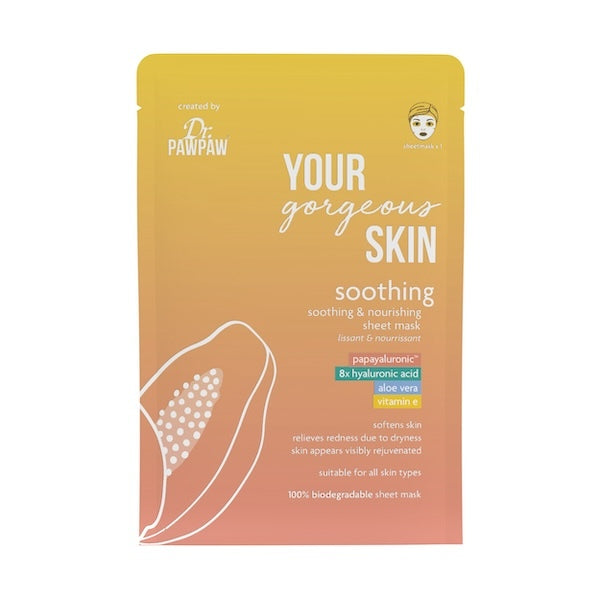 YOUR gorgeous SKIN soothing sheet mask is a biodegradable treatment that is nourishing, soothing, vegan, and suitable for all skin typ