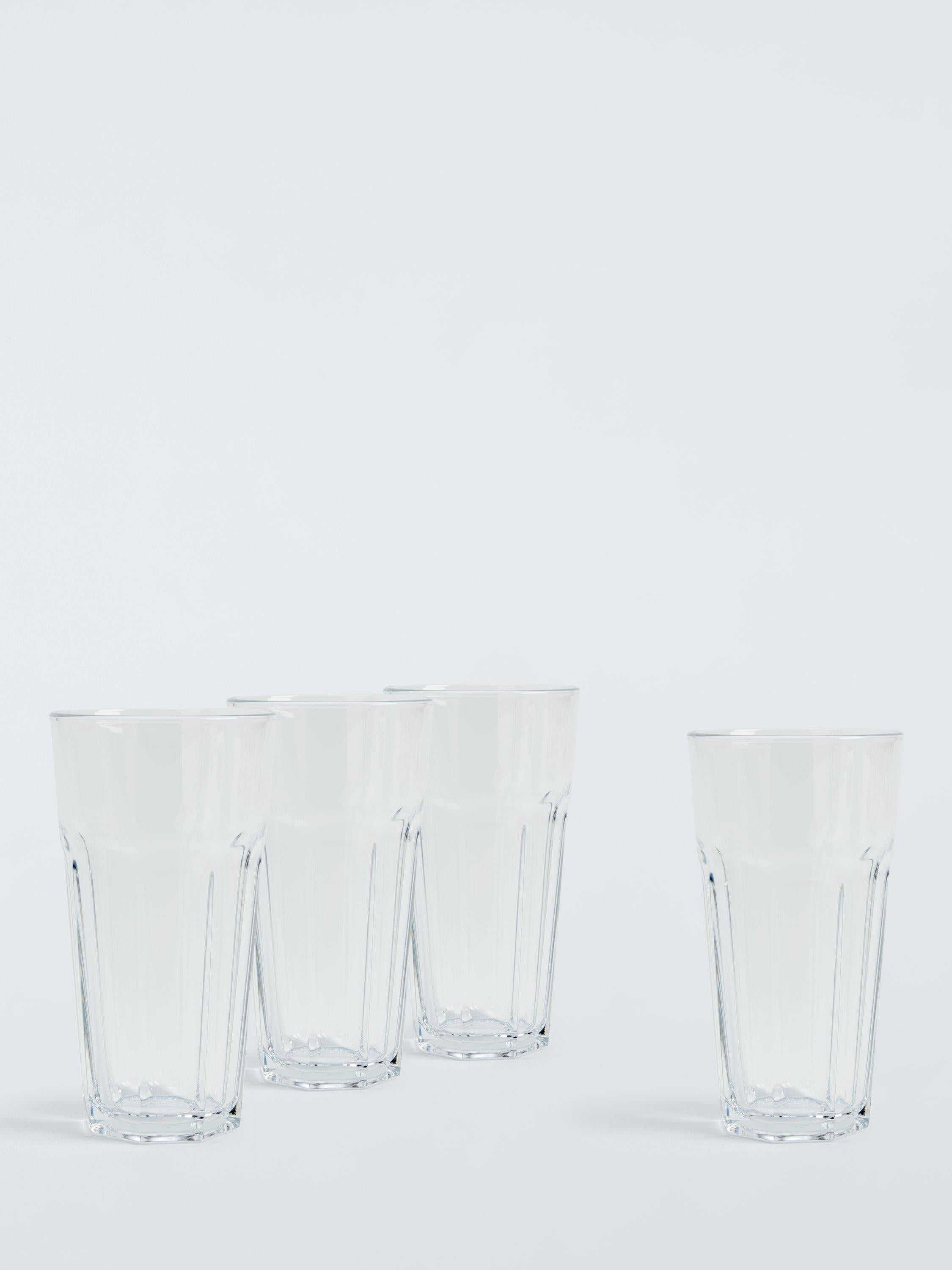 John Lewis ANYDAY provides this practical set of four clear bistro tumblers, perfect for everyday needs, each glass holding a generous 430ml volume. These simple yet functional tumblers feature unique shaped bases to guarantee a secure, comfortable hold for all users during service. They are robustly made for frequent use.