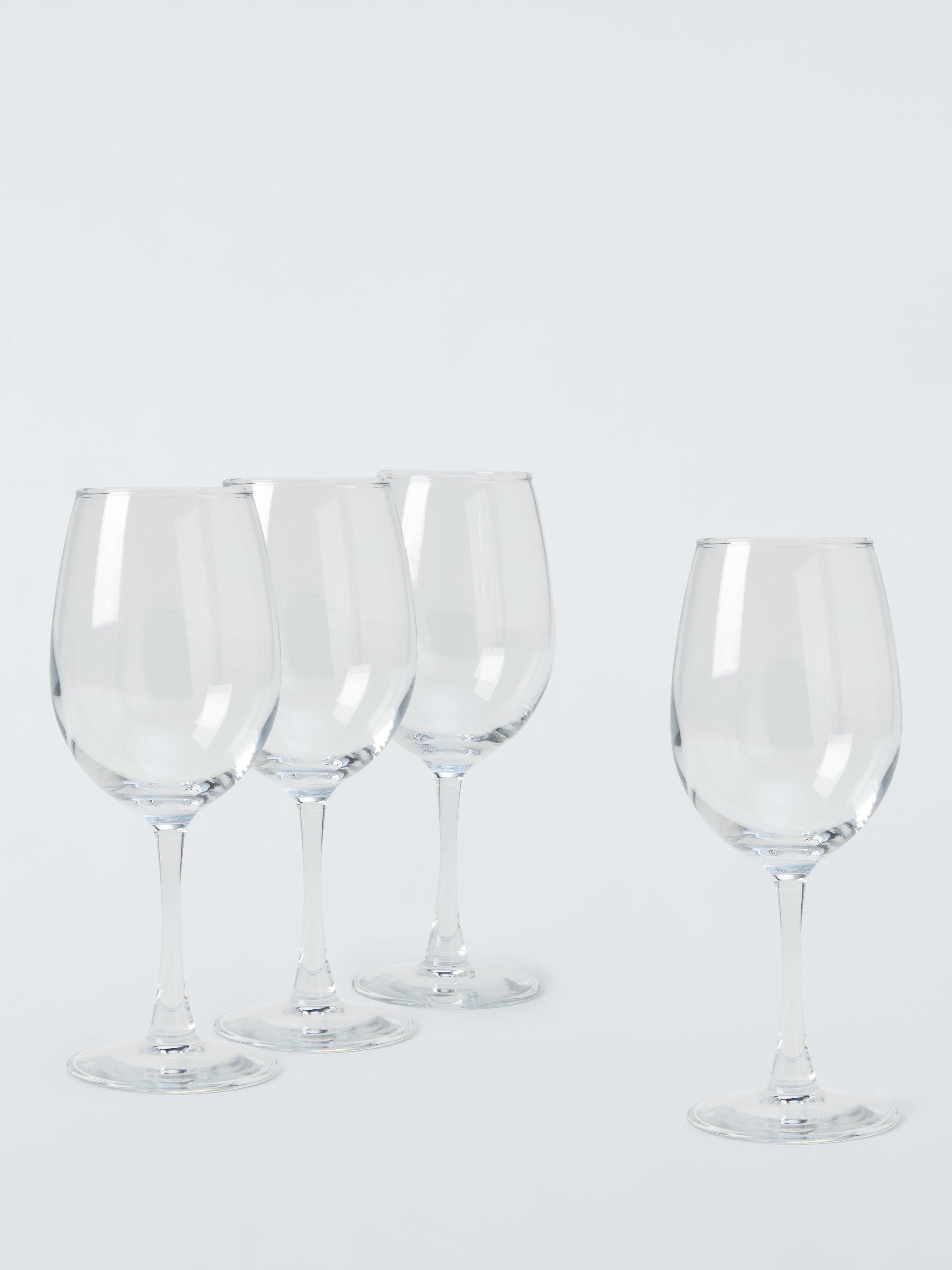 This John Lewis ANYDAY set supplies four clear wine glasses, perfect for serving everyday beverages or special occasions with style. Each piece showcases a timeless, classic design incorporating an ample bowl shape atop an elegant stem structure. This sturdy glassware collection offers practical utility and lasting visual appeal for your table setting.