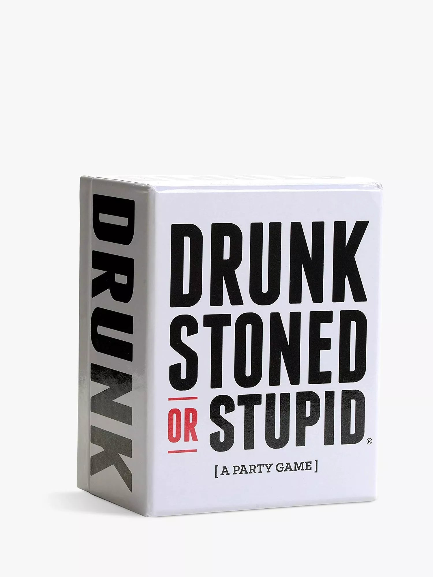 Inside the box, you’ll find 250 prompt cards that work along the lines of Who’s Most Likely To… And, since this isn’t a school prize-giving, don’t expect that sentence to ever end with ‘start their own business’, or ‘win a Nobel Prize’. Drunk, Stoned, or Stupid is a party game that roots out bad decisions… and punishes them!