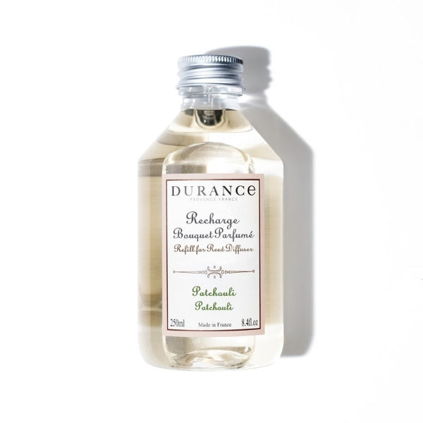 Durance Refill for Reed Diffuser Patchouli 250ml Luxury French Home Fragrance Refill – Handcrafted in Provence Sustain a Warm and Enchanting Ambiance with the Rich Scent of Patchouli Replenish your reed diffuser with the captivating fragrance of Patchouli, a scent that combines all the facets of patchouli, from its freshest, almost aromatic notes to its most sensual, spicy, amber, and woody tones. This 250ml refill allows you to maintain a warm and enchanting atmosphere in your home. Fragrance Profile Top Notes: Bergamot, Clary Sage Heart Notes: Labdanum, Pine, Patchouli Base Notes: Amber, Vanilla, Cedar Key Benefits Extended Enjoyment: This 250ml refill allows you to recharge your Durance reed diffuser more than twice, providing approximately two months of continuous diffusion. Sustainable Choice: Refilling your diffuser is an eco-friendly option, reducing waste and enabling you to continue enjoying your favorite scent without the need for a new diffuser set. Consistent Fragrance: Ensures a steady diffusion of scent, keeping your home continuously enveloped in the rich aroma of Patchouli. How to Use Carefully pour the refill liquid into your empty Durance reed diffuser bottle. Insert new natural rattan sticks into the bottle containing the fragrance. Allow the sticks to absorb the scent and naturally diffuse it into the room. For a more intense fragrance, occasionally flip the sticks to refresh the scent diffusion. Crafted in collaboration with master perfumers from Grasse, this Patchouli fragrance refill allows you to continue transforming your interior into a warm and enchanting haven, enveloping your space with the rich and captivating aromas of Provence.