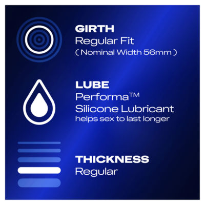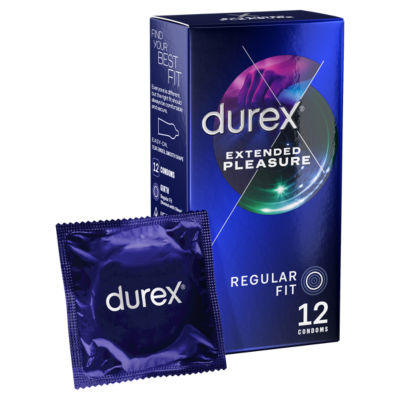 Product InformationDurex Extended Pleasure condoms, with enhanced lubricant to help sex to last longer. Find Your Best Fit Everyone is different, but the right fir should always be comfortable and secure. Girth - Regular Fit (Nominal width 56mm) Lube - Performa™ Silicone lubricant contains benzocaine 5%, a local anaesthetic to help him last longer Thickness - Regular Smells Better - The way we make Durex condoms makes them smell better