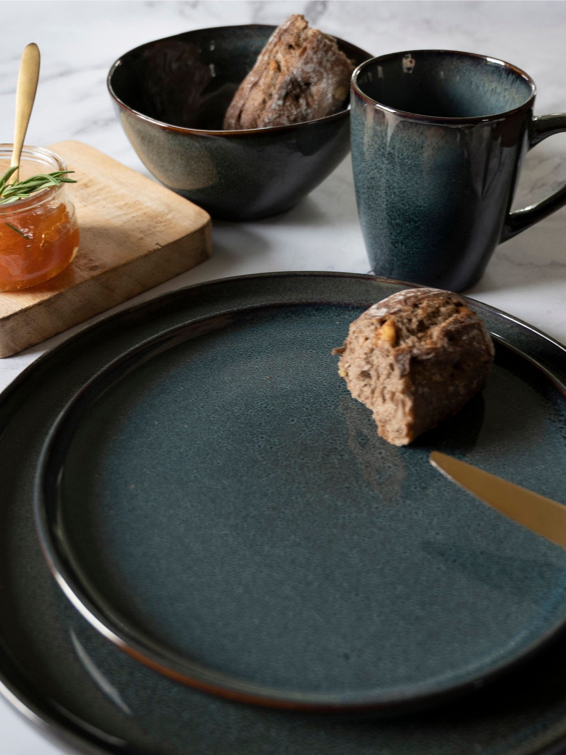 Dutch Rose Serenity Set of 4 dinner plates - 27 cm - Blue Available in 4 different colours, these large 27cm dinner plates are the perfect contemporary addition to your tableware collection for any lunch, dinner or to be used as a serving platter. They are easily stackable, making them easy to store, whilst forming a beautiful rhythmic harmony. They are scratch-resistant and come with a stylish and practical a lip to contain all the juices from your meal. The Serenity collection is inspired by Japanese pottery and captures the essence of rustic tableware with more than a hint of elegance. Its natural and calm tones on genuine vitrified stoneware are the perfect marriage between modern tableware design and organic quality, produced using traditional manufacturing techniques. Made with high quality stoneware, they will bring style, quality and sustainability to your home. Dishwasher safe, microwaveable. Due to the double-fired reactive glaze, slight colour variations and bubbles may occur, making each piece truly unique.