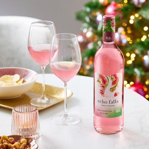 - Echo Falls is the number #1 Fruit Fusion Wine Brand in the UK, - 9.0% Mixed Alcohol Beverage, - Appearance: Strong, bright pink, - Palate: Sweet with a acidic fruity note, lasting sweet watermelon