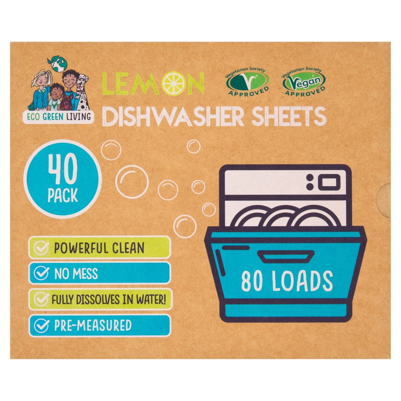Achieve a powerful clean with these pre-measured Eco Green Living dishwasher sheets, featuring a refreshing lemon scent. These sheets are designed to dissolve completely in water, eliminating mess and ensuring accurate dosing for every cycle.
