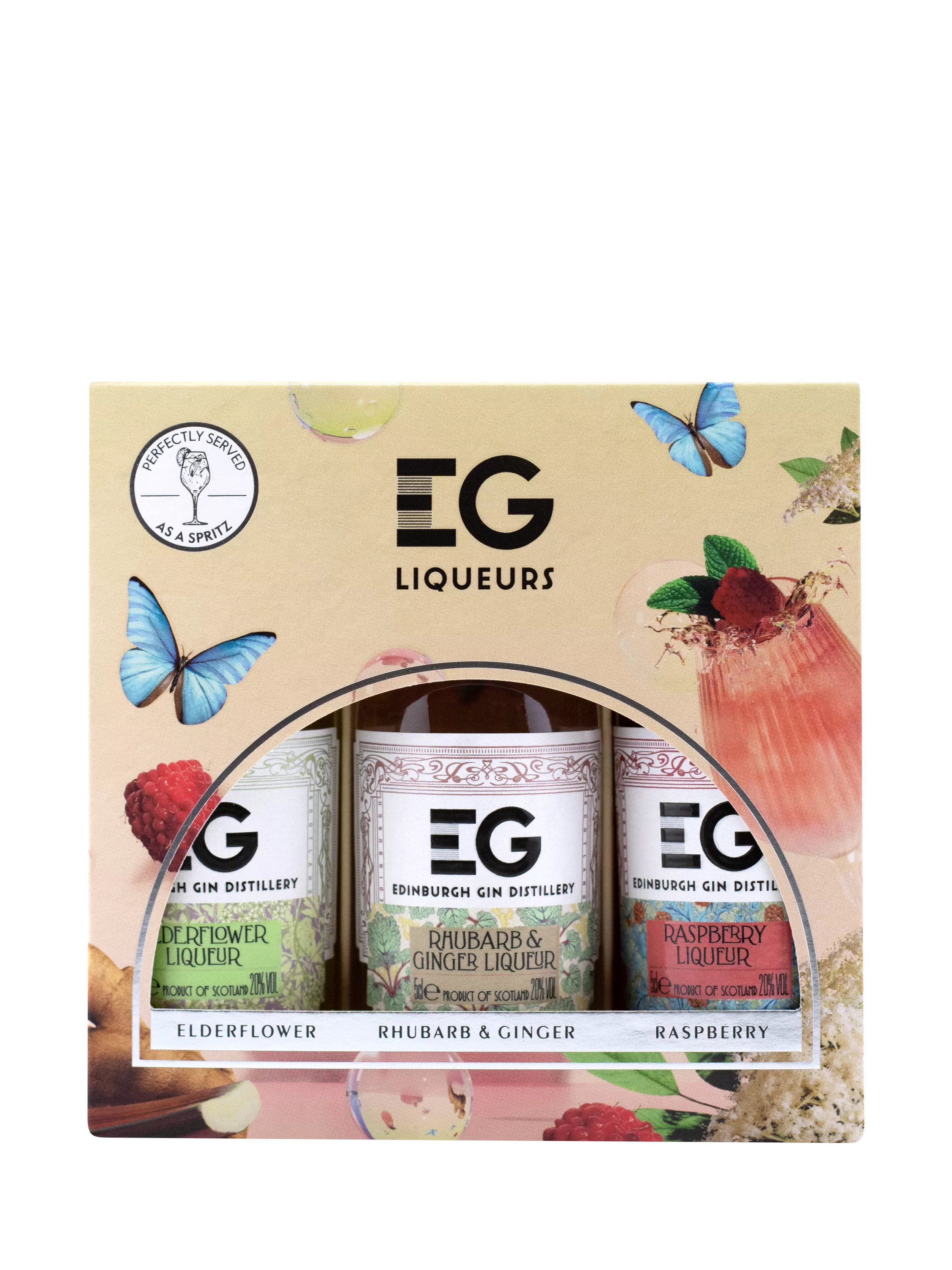 This beautifully presented Edinburgh Gin gift box contains three 5cl miniatures; Raspberry Gin Liqueur, Rhubarb and Ginger Gin Liqueur and Elderflower Gin Liqueur.