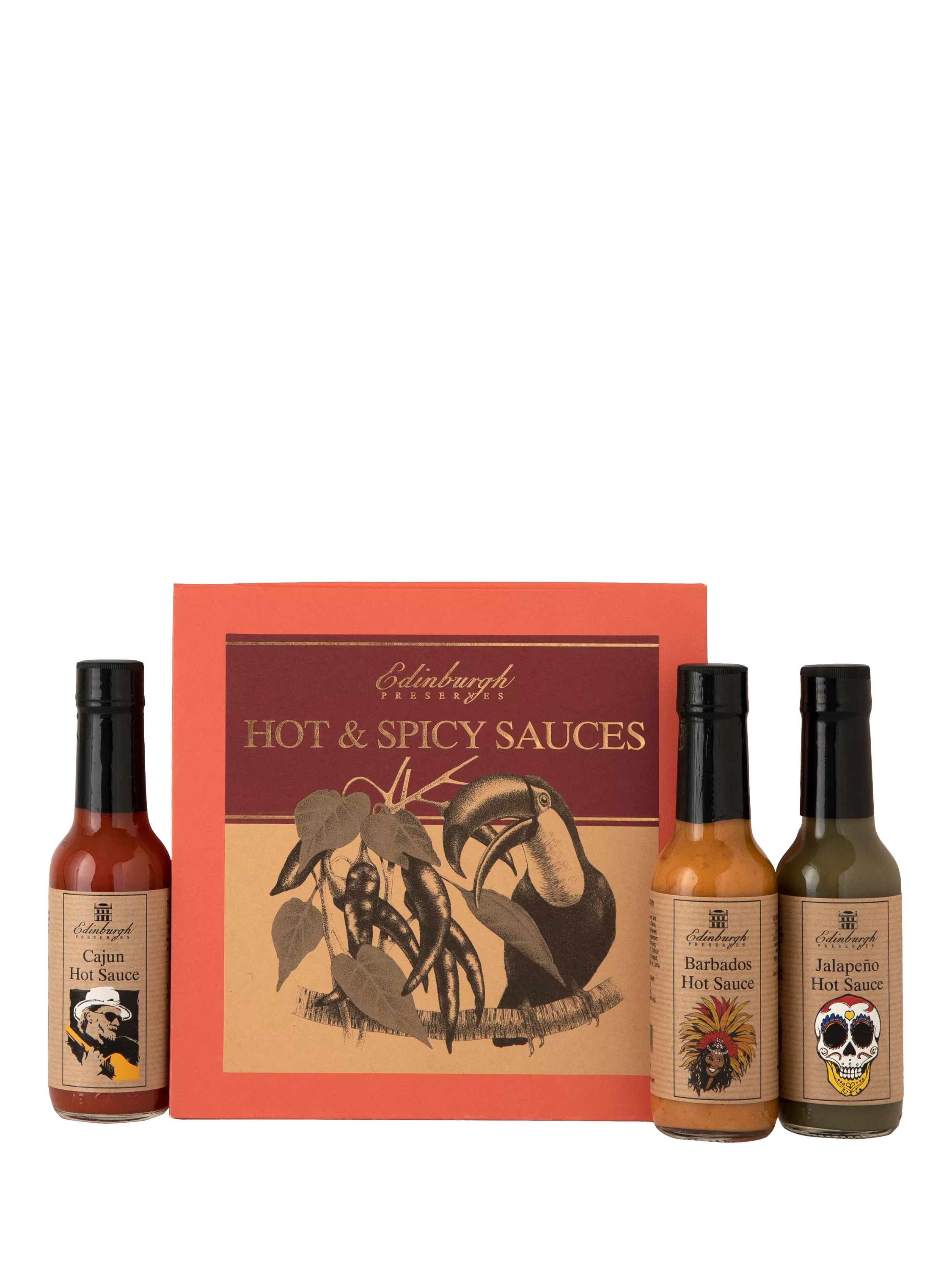 A trio of sauces from around the world, each brimming with spices, flavour and varying degrees of heat! The Caribbean Hot sauce (148ml) is a classic from Barbados and is perfect with meat, poultry or fish. Named after the town of Jalapa in Mexico; the Jalapeno Sauce (148ml) has a distinctly fresh grassy flavour making it a favourite among chilli lovers. The Cajun is a typical aged red pepper Louisiana style Hot Sauce (148ml).