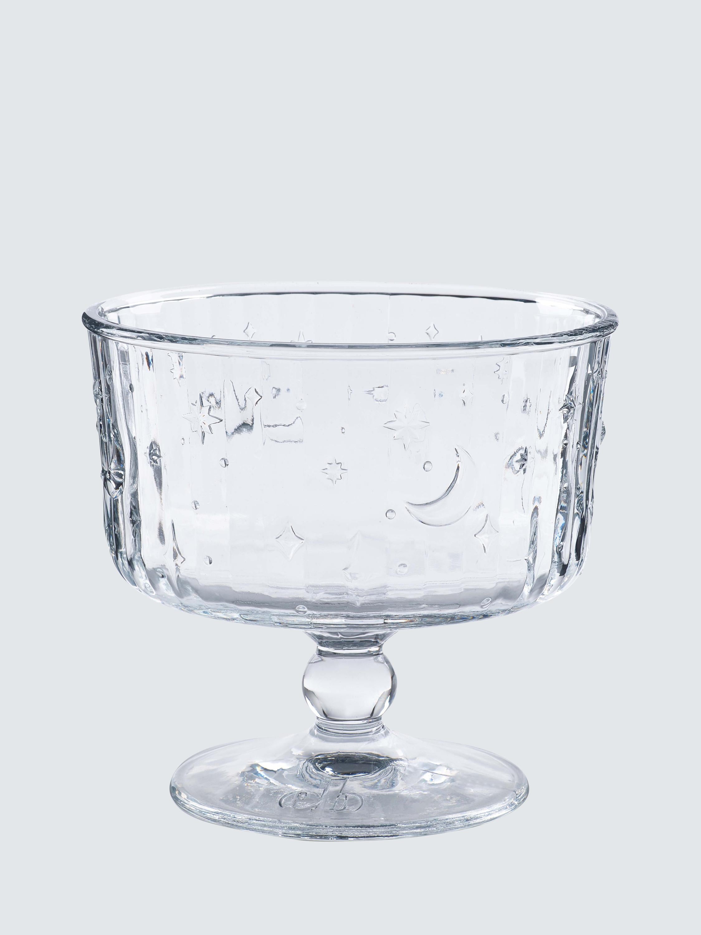 Pressed glass trifle bowl designed with lips, moon and stars icons from Eleanor Bowmer's signature Electric Coast collection.
