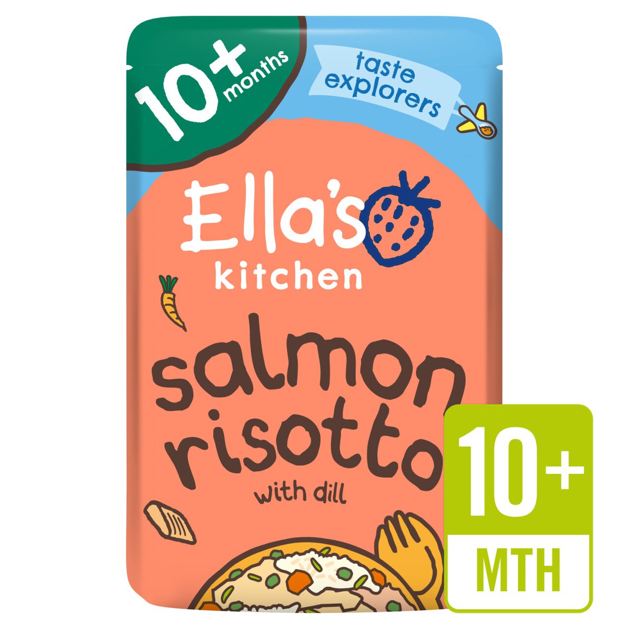 This Ella's Kitchen meal is specifically designed for babies from 10 months who are beginning to explore new tastes and textures. This risotto combines organic rice, vegetables, salmon, and cheese into a perfectly balanced meal for growing little ones. It supports their developmental stage by encouraging more adventurous eating habits.