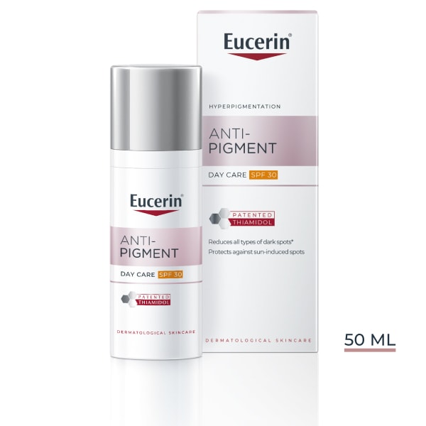 eucerin antipigment day cream spf 30 is a moisturising day cream that effectively reduces dark sports and prevents their reappearance this antipigment day cream helps to reverse the harsh effects of sunlight exposure and ageing which can trigger hyperpigmentation leaving the skin with dark patches and age spots that can make the skin look uneven the active ingredient thiamidol is an effective and patented ingredient that acts at the root cause of this hyperpigmentation by reducing melanin production thus helping to reduce the dark patches and age spots and works to stop their reappearance with uva and uvb this day cream provides spf 30 sun protection leaving you with even and radiant skin product benefits absorbs quickly lightly fragranced uvauvb protection spf 30 proven efficacy