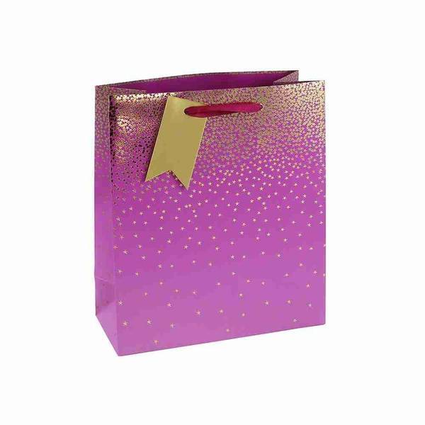 Eurowrap offers this convenient pack of six gift bags featuring a vibrant, modern aesthetic. The design showcases a striking purple and pink gradient ombre effect across the entire surface. These bags provide a quick and elegant solution for presenting presents for birthdays or any celebratory occasion.