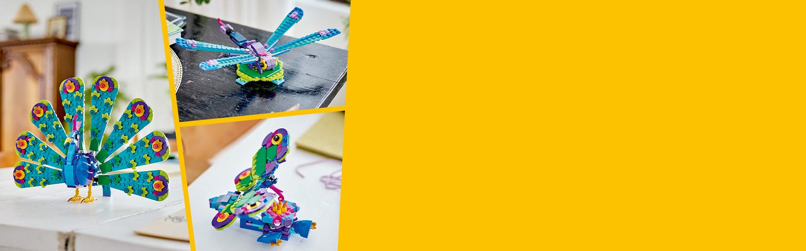 Boys and girls aged 7+ can build, play with and display 3 different exotic LEGO® animal toys with this impressive Creator Exotic Peacock (31157) 3in1 building set. It features a peacock toy with a set of beautiful and detailed tail feathers that can be folded down or proudly spread out.