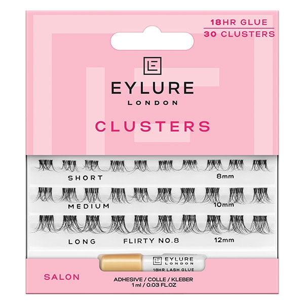 Read MoreCreate your own customizable lash look with our Flirty No.8 cluster lashes. Perfect for above or underlash application, these clusters let you design a style that's uniquely yours. Easy to apply and comfortable to wear, our clusters come in 3 lash lengths- 8mm, 10mm & 12mm. Handmade and reusable, every lash pack contains 30 clusters and comes with our latex free lash glue that is guaranteed to last up to 18 hours