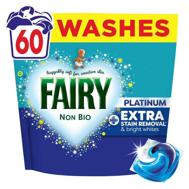 Fairy Non Bio Platinum PODS® offer enhanced cleaning performance with extra stain removal and brighter whites compared to standard Fairy Pods. These capsules are endorsed with the Skin Health Alliance Seal, reflecting their gentle formulation. They are designed to provide a thorough clean while respecting delicate skin types.