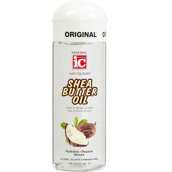 Product Information ic fantasia shea butter oil hair polisher hair polisher shea butter oil prevents hair from breaking encouraging growth helps reduce split ends and smooth the hairline for intense shine