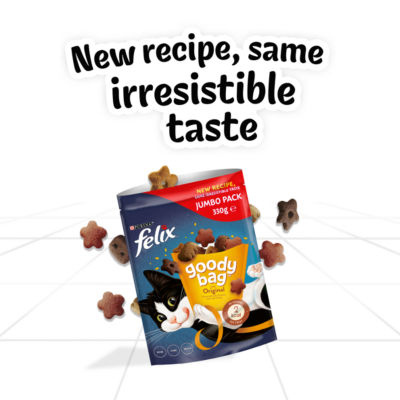 Product InformationShare more loveably, mischievous moments with your cat with Felix® Goody Bag™ - containing an irresistible, colourful mix of cat treats that are full of enticing aromas, delicious flavours and fun shapes. That's not all! Felix® Goody Bag contains proteins, vitamins and omega 6 fatty acids to help your cat live a healthy and happy life.