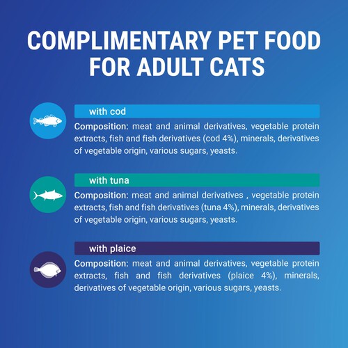 Complementary pet food for adult cats, Made with quality ingredients, No Added Artificial Colourants Flavourings or Preservatives