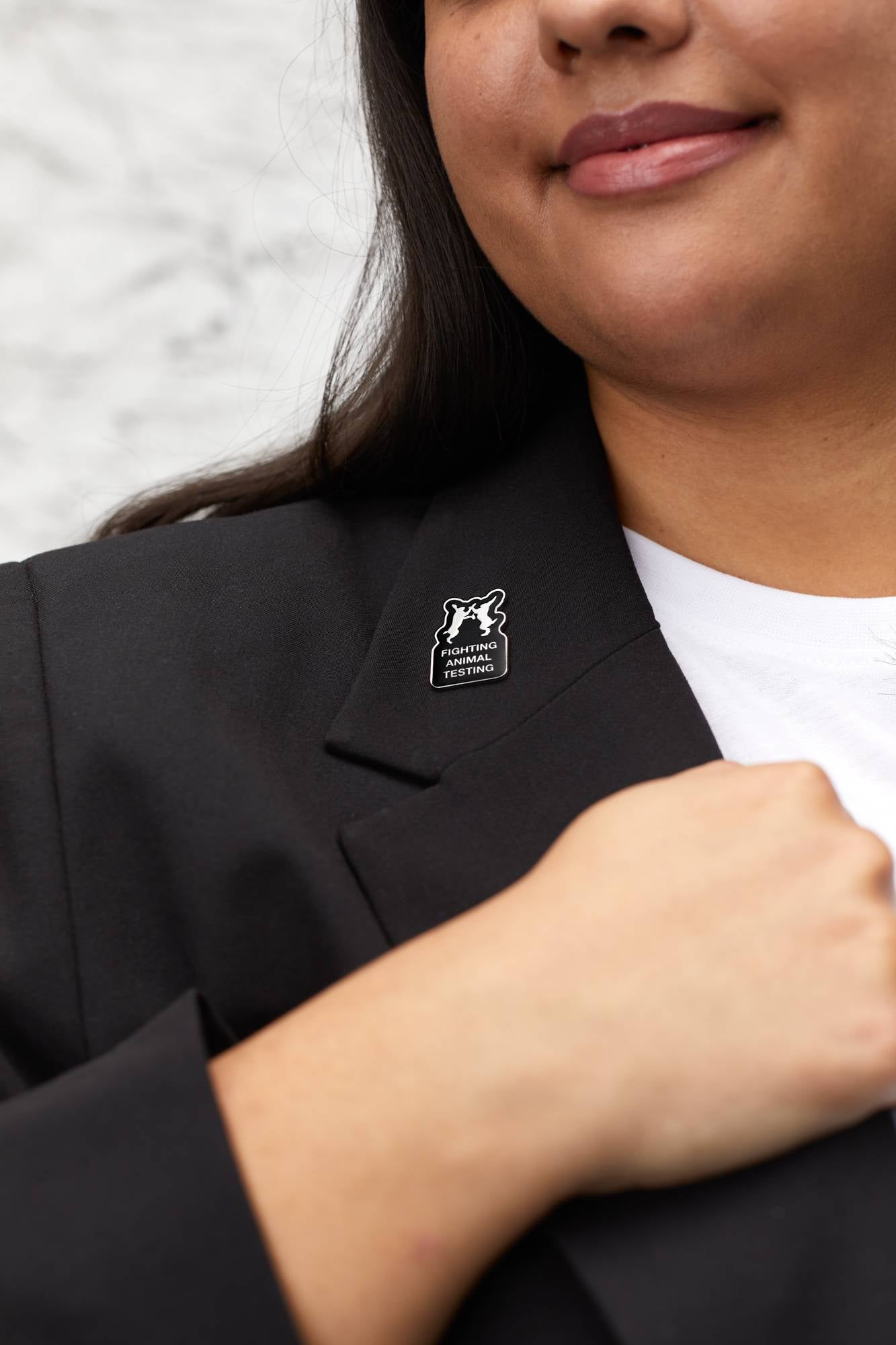 Take a stand against animal testing and help to spread the word with this pin badge. Measuring 19.5mm x 30mm, this badge can be cherished, gifted, and worn with pride.