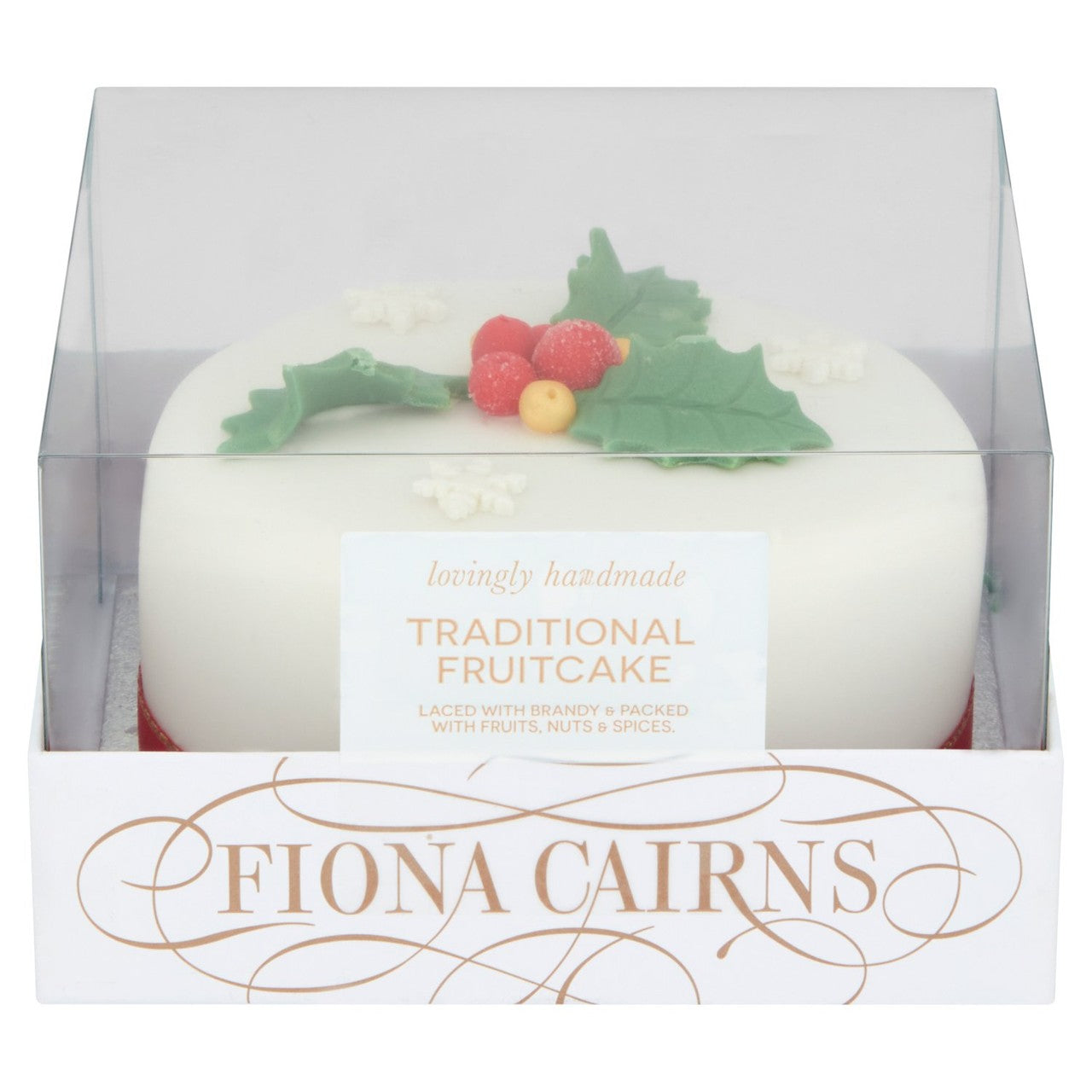 This Fiona Cairns Traditional Fruitcake is lovingly handmade using a classic recipe, making it an excellent choice for a festive gift cake. The rich mixture contains brandy, plentiful fruits, nuts, and spices, offering a deeply satisfying flavour profile for seasonal sharing. This premium 4-inch cake is presented ready for celebration, featuring edible festive decorations like holly and berries.