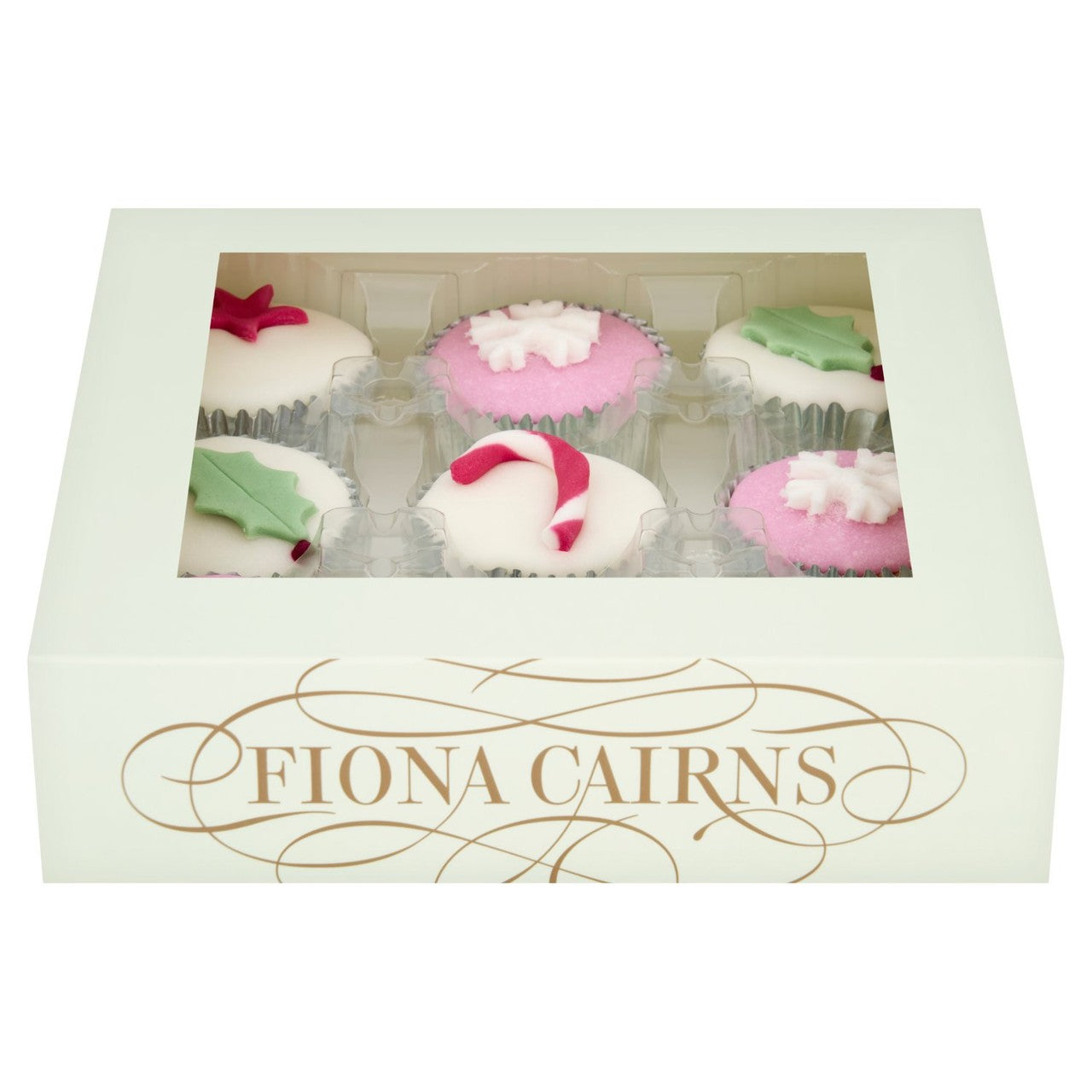 - The clear windowed box beautifully showcases the six decorated cakes inside.