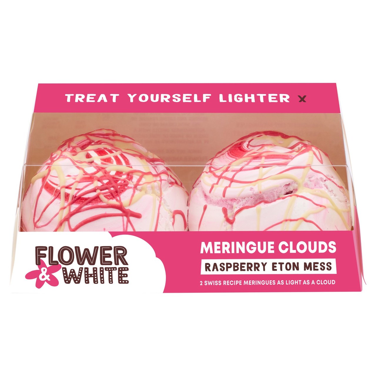 These Raspberry Eton Mess Meringue Clouds are carefully baked using a traditional, melt-in-the-mouth Swiss recipe in Shropshire. They offer an indulgent yet convenient base for creating stunning, sophisticated desserts quickly at home. Each cloud is hand finished with a generous drizzle of chocolate for enhanced flavour and texture. Enjoy this delightful confection knowing it uses only natural colours and flavours throughout the entire baking process.