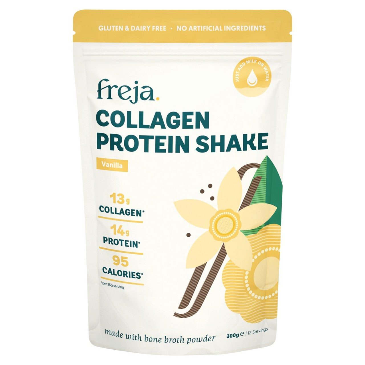 Read More| Freja's Vanilla Shake is a subtly sweet collagen and protein powder made with simple, natural ingredients. Now nutritionally improved with even higher quality ingredients. Natural source of 13g collagen (Types I& III). High in protein (14g per serving). Natural sourcing with just 4 ingredients. |