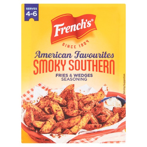 Bring the taste of American favourites to your kitchen with French's Smoky Southern Fries & Wedges Seasoning. This blend is specifically formulated to deliver a deep, smoky flavour to chips and potato wedges.