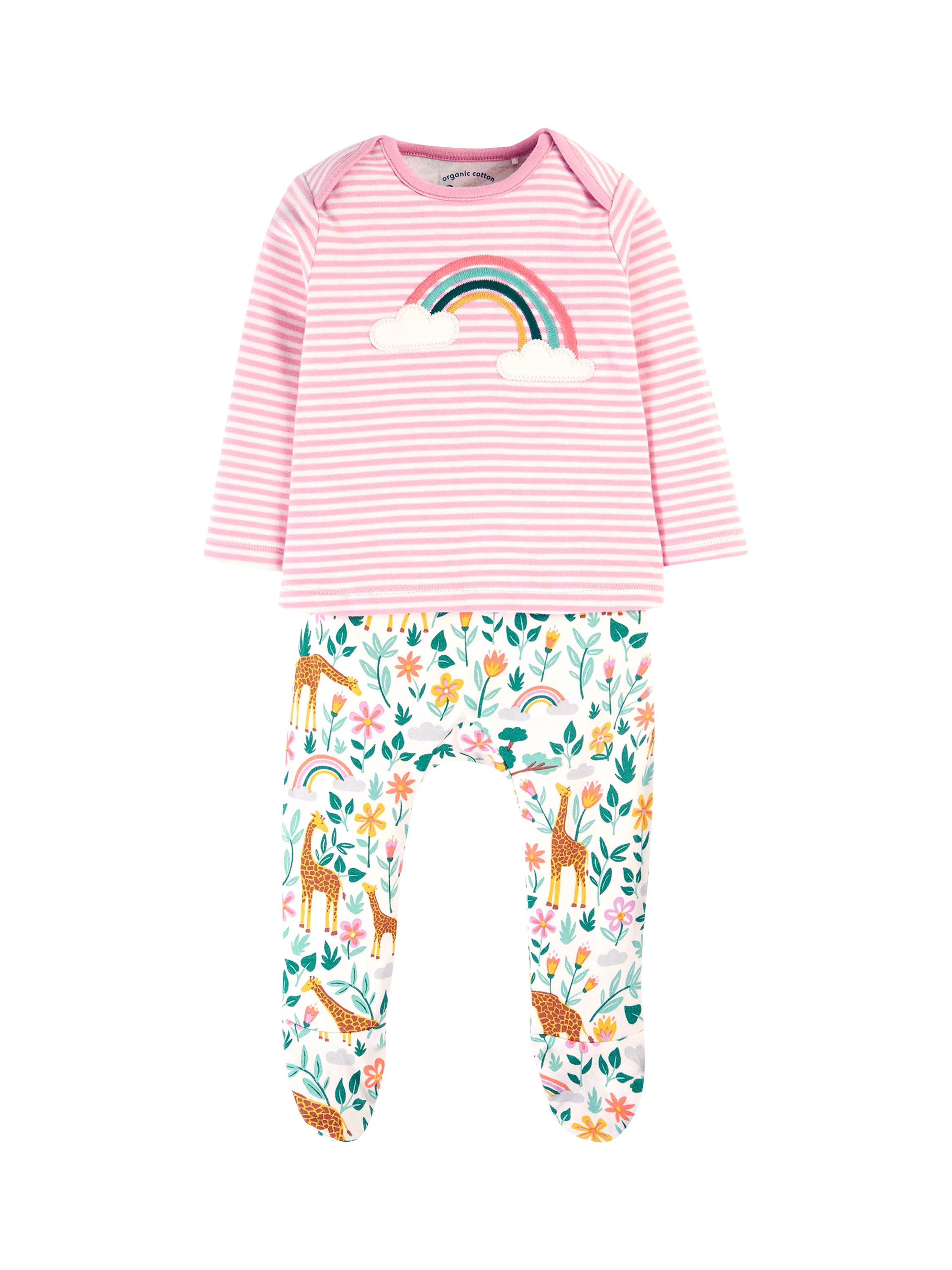 Made from super-soft and breathable organic cotton, this footed bodysuit features an envelope neckline and stretchy rib back opening for convenience when dressing and changing.