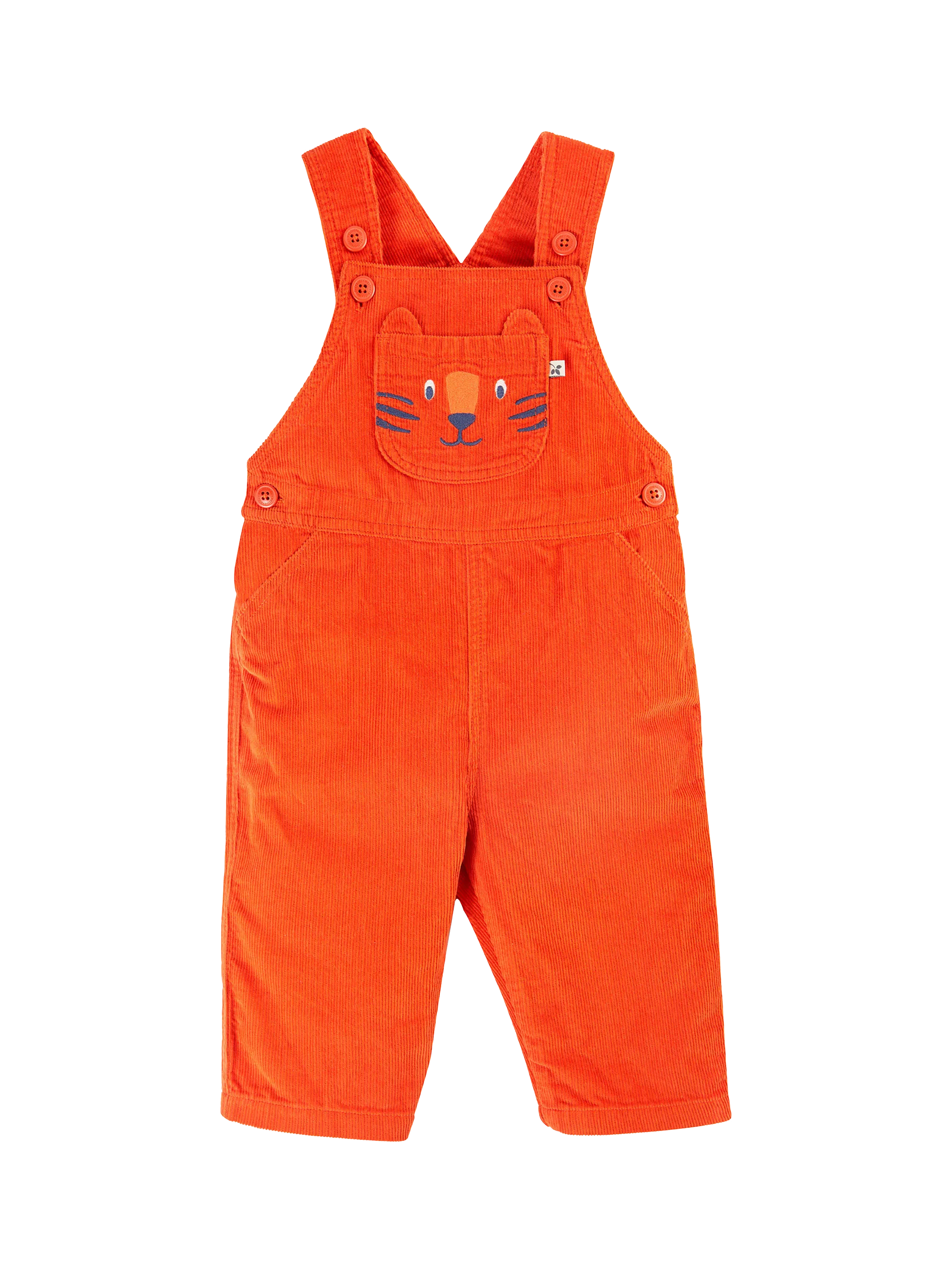 These corduroy dungarees are made from 100% organic cotton, making them super-duper soft and hardwearing. The button fastenings on the side and the adjustable button-up shoulder straps make dressing easy. Finished with a cute character pocket on the front.