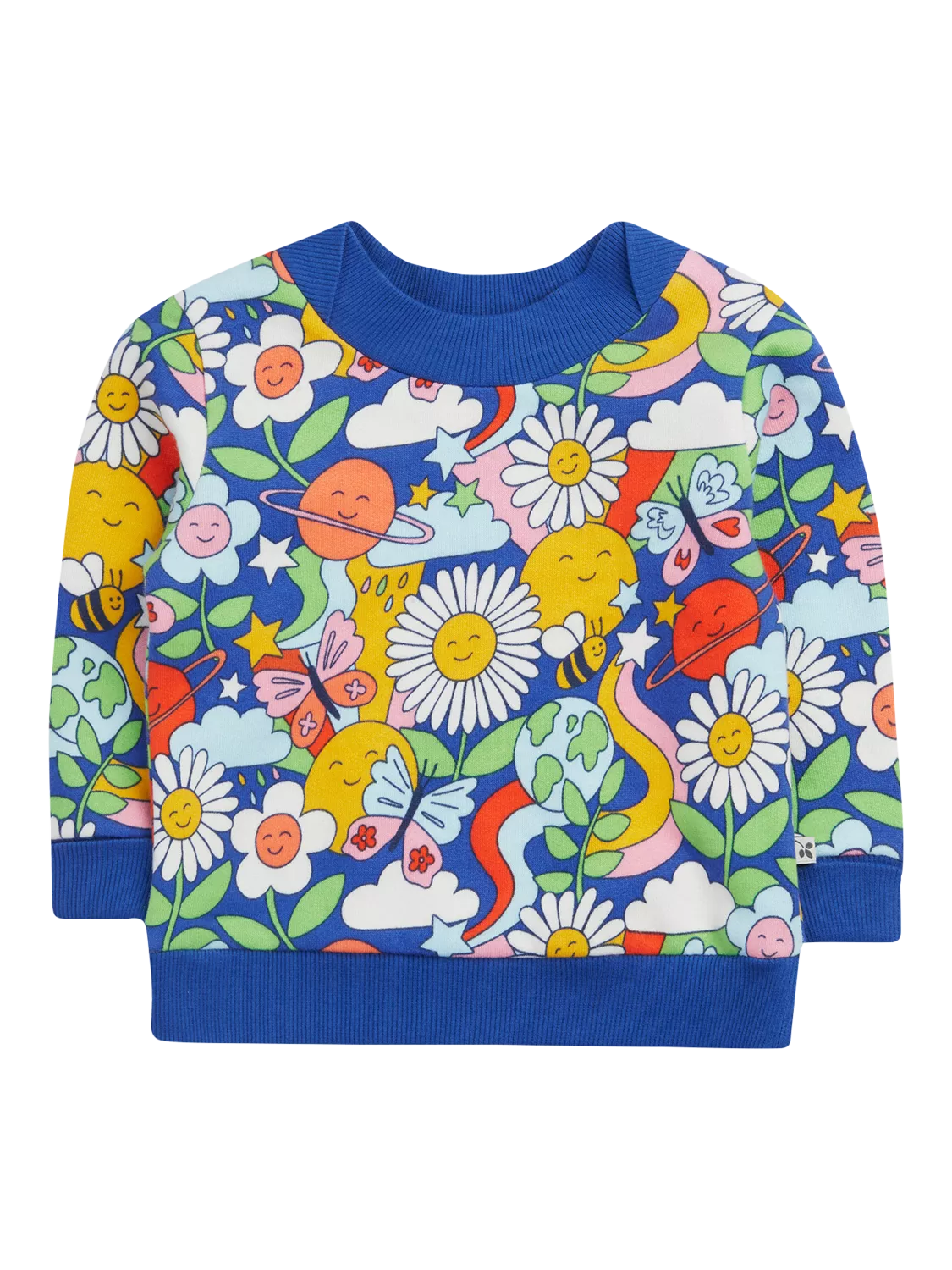 Featuring a Stretchy V-shaped neckband for easy dressing, this cute printed applique sweatshirt has the ahhh factor and keeps them cosy and warm in organic cotton brushback fleece.