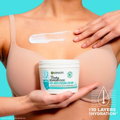 Product InformationUp to 48H Moisturising Cream: Garnier Body Superfood is a fast absorbing cream that hydrates skin up to 10 layers deep*. *Upper layers of the epidermis 96% Natural Origin Ingredients: This formula contains Aloe Vera, known for its powerful hydrating nutrients and cooling properties & Magnesium-PCA; a trending natural-origin mineral known for its soothing properties. Your Daily Dose of Superfood and Derm Actives: treat your skin to hydration that you can feel & enjoy the relaxing application process after your daily shower or bath. Garnier Body Superfood Aloe Vera & Magnesium is formulated for normal to dry skin and enriched with two powerful key ingredients! Aloe Vera is known for its powerful hydrating nutrients and cooling properties & Magnesium-PCA is a trending natural-origin mineral known for its soothing properties. This powerful cream leaves the skin feeling instantly hydrated, up to 10 layers deep*, for results you can feel and provides up to 48 hour moisturising**. With ingredients of 96% Natural Origin - this product is a vegan formula. All Garnier products globally are officially approved by Cruelty Free International under the Leaping Bunny Programme, the leading organisation working to end animal testing worldwide, and the recognised Cruelty Free Gold Standard. *Upper layers of the epidermis **Instrumental test, 24 volunteers